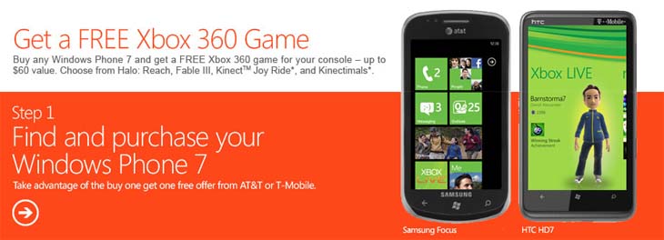 Новых ход корпорации также направлен на повышение популярности платформы в условиях жесткой конкуренции. Одним из важнейших преимуществ Windows Phone 7 является поддержка мощного игрового сервиса Xbox Live, благодаря которому обладатели смартфонов могут играть в различные игры, а также получают массу дополнительных возможностей вплоть до совместного мультиплеера между пользователями смартфонов и консолей. Компания объявила о том, что любой приобретший устройство до 31 декабря текущего года получит игру для консоли Xbox 360 совершенно бесплатно. В списке доступных игр - Halo: Reach, Fable III, Kinectimals и Kinect Joy Ride. Как становится ясно из названий, две последние игры адаптированы для управления игровым контроллером нового поколения Microsoft Kinect.